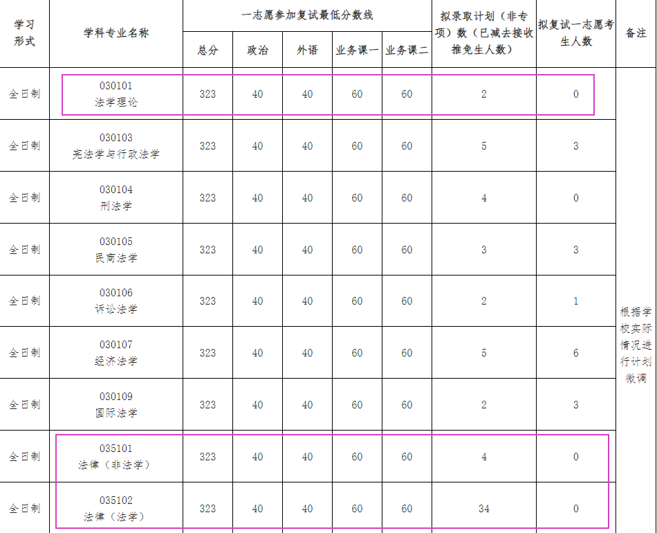 030101法学理论、030104刑法学、035101法律(非法学)、035102法律(法学)0人上线。